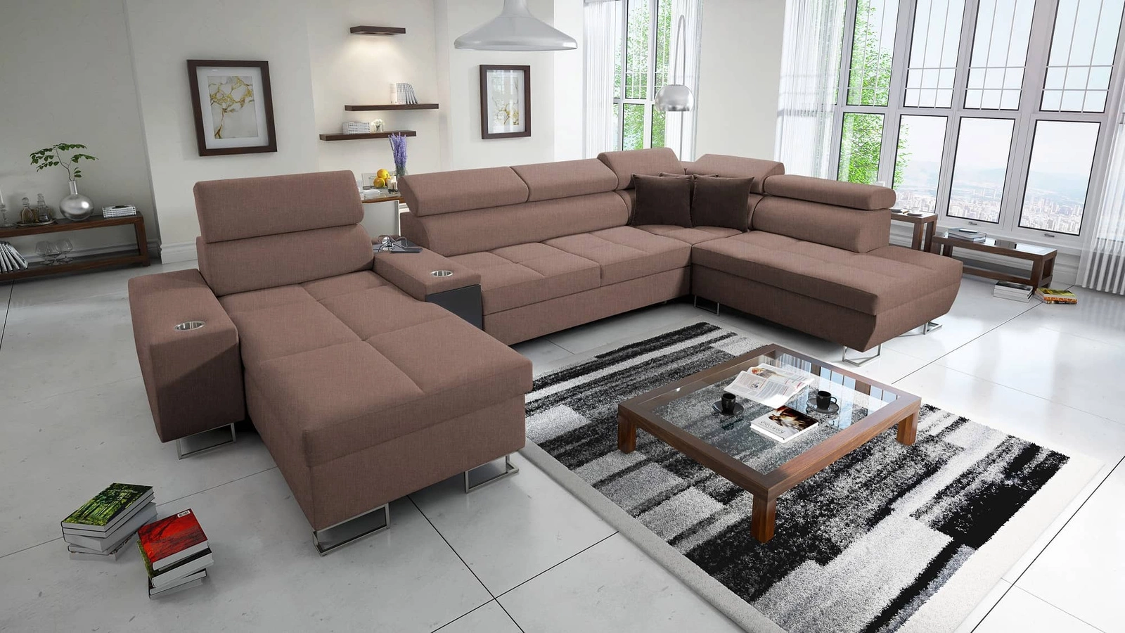 Narożnik Dafni V w kolorze jasny brąz z regulowanymi zagłówkami to ciekawie prezentujący się mebel z gwarancją najwyższego komfortu i funkcjonalności.