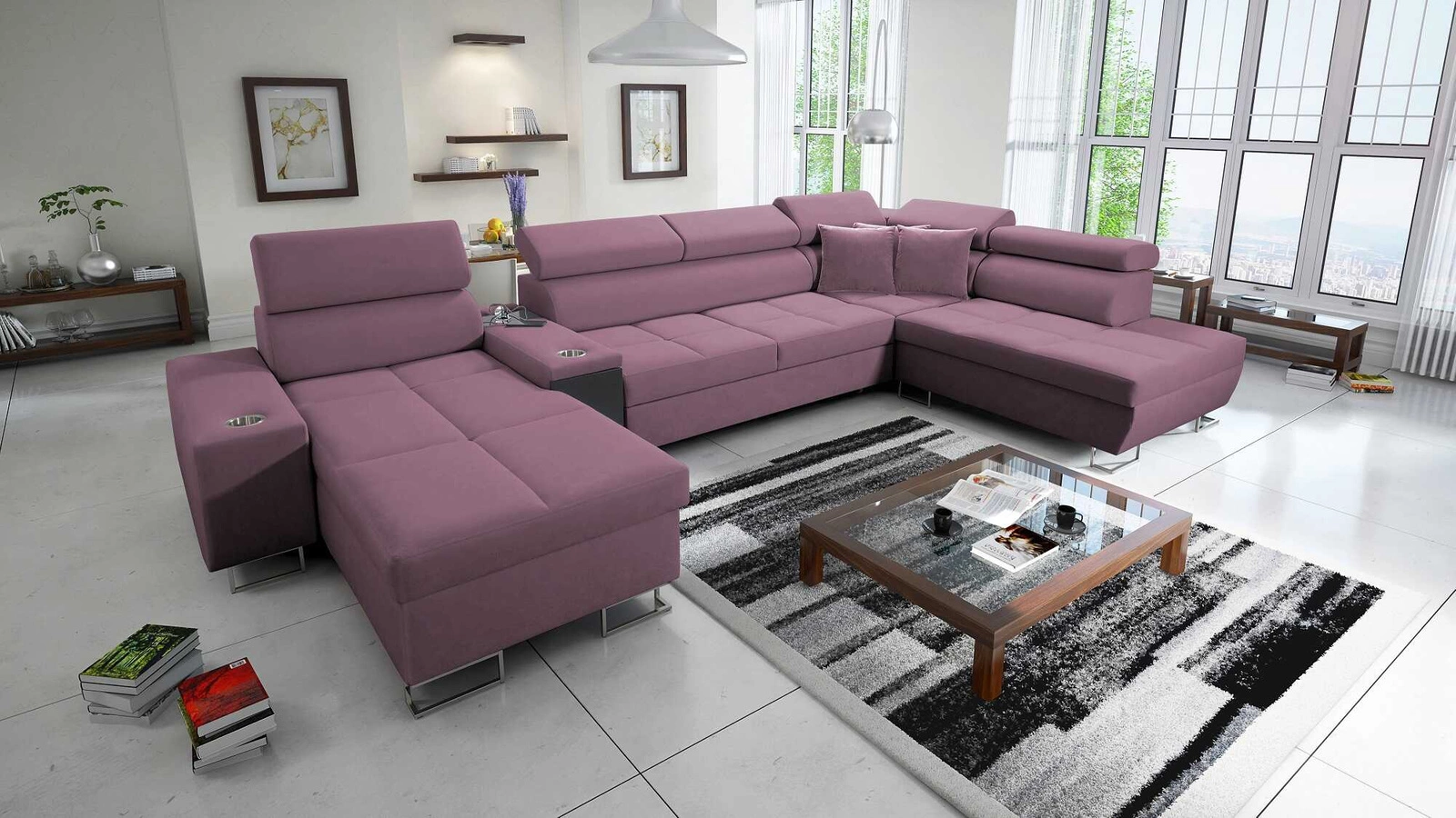 Narożnik Dafni V w kolorze wrzosowym z regulowanymi zagłówkami to ciekawie prezentujący się mebel z gwarancją najwyższego komfortu i funkcjonalności.