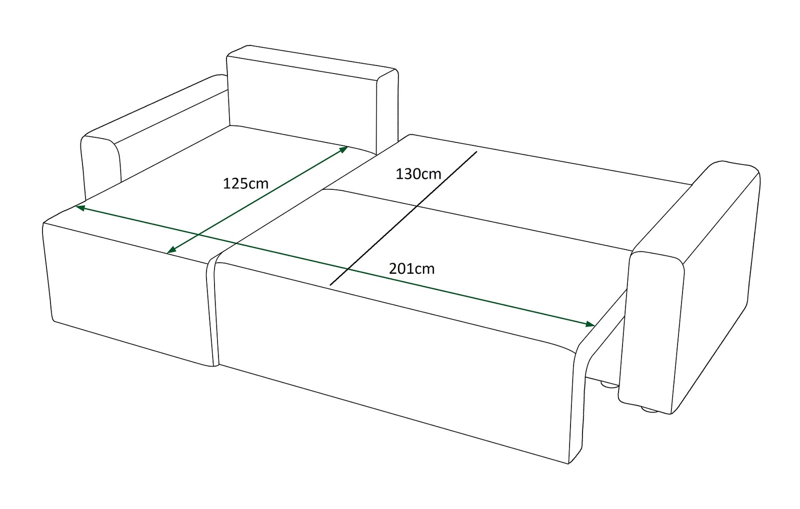- powierzchnia spania: 125x201 cm