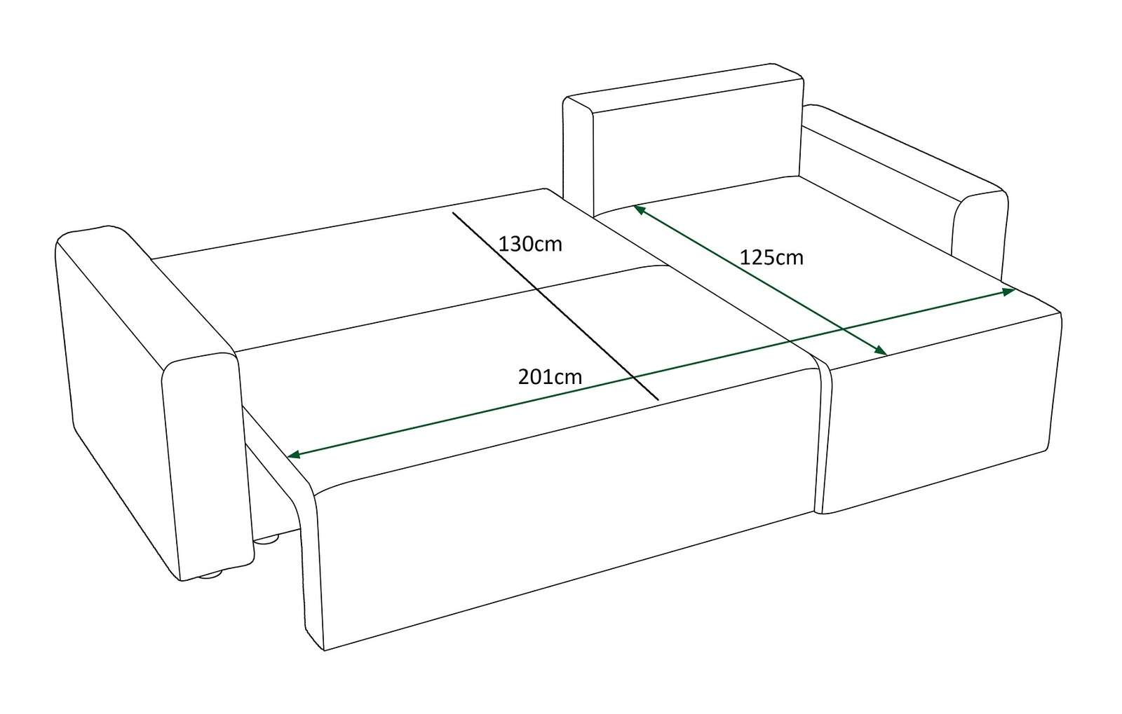 Wymiary narożnika z funkcją spania:
