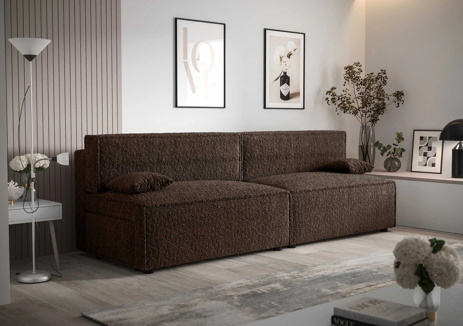 Kanapa rozkładana Brandon XL brązowa nowoczesny design i szeroka funkcjonalność tkanina o charakterystycznej pętelkowej powierzchni