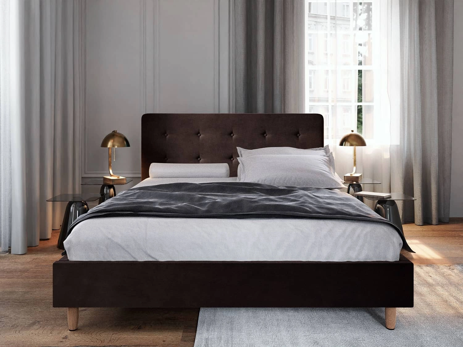 Łóżko wykonane z tkaniny typu plusz Itaka 41 gwarantuje najwyższy komfort i funkcjonalność podczas codziennego wypoczynku w sypialni. Tkanina jest wyprodukowana w technologii easy clean oraz wykazuje właściwości ograniczające wchłanianie cieczy. Dzięki wszystkim właściwościom użytej tkaniny, łóżko tapicerowane na długo zachowa swój pierwotny wygląd. Konstrukcja łóżka zapewnia dużą stabilność i wygodę użytkowania. Konstrukcja łóżka zapewnia dużą stabilność i wygodę użytkowania. Rama łóżka jest wykonana z drewna oraz płyty meblowej. Pikowane wezgłowie przyciąga wzrok i nadaje łóżku szczególnego charakteru. Nogi łóżka są wykonane z drewna bukowego.