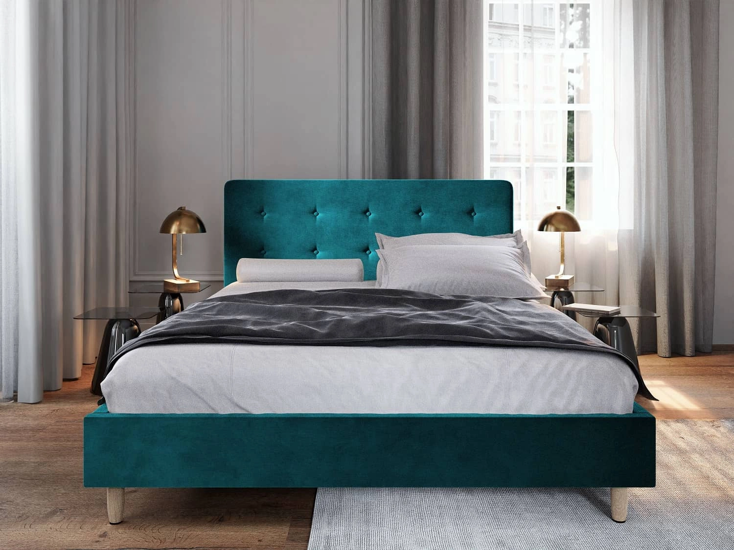 Łóżko tapicerowane Noiro 180x200 w kolorze turkusowym to stylowy mebel, który idealnie wkomponuje się do każdej sypialni.