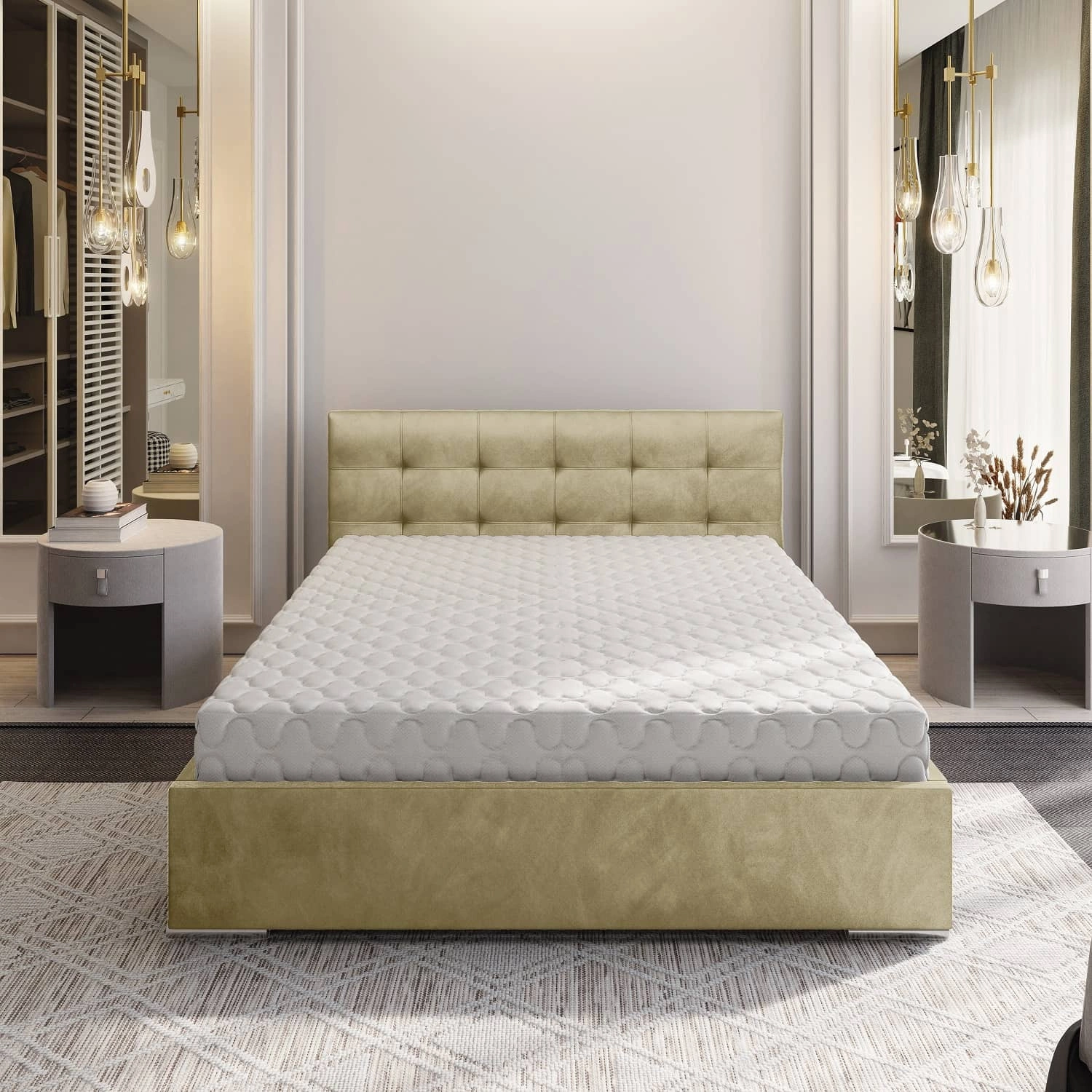 Łóżko wykonane z tkaniny typu velvet Monolith 02 gwarantuje najwyższy komfort i funkcjonalność podczas codziennego wypoczynku w sypialni. Tkanina posiada powłokę hydrofobową, co gwarantuje ograniczone wchłanianie cieczy. Ciekawa struktura tkaniny nadaje wyjątkowego charakteru. Dzięki wszystkim właściwościom użytej tkaniny, łóżko na długo zachowa swój pierwotny wygląd. Konstrukcja łóżka zapewnia dużą stabilność i wygodę użytkowania. Rama łóżka jest wykonana z drewna oraz płyty meblowej. Pikowane wezgłowie przyciąga wzrok i nadaje łóżku szczególnego charakteru