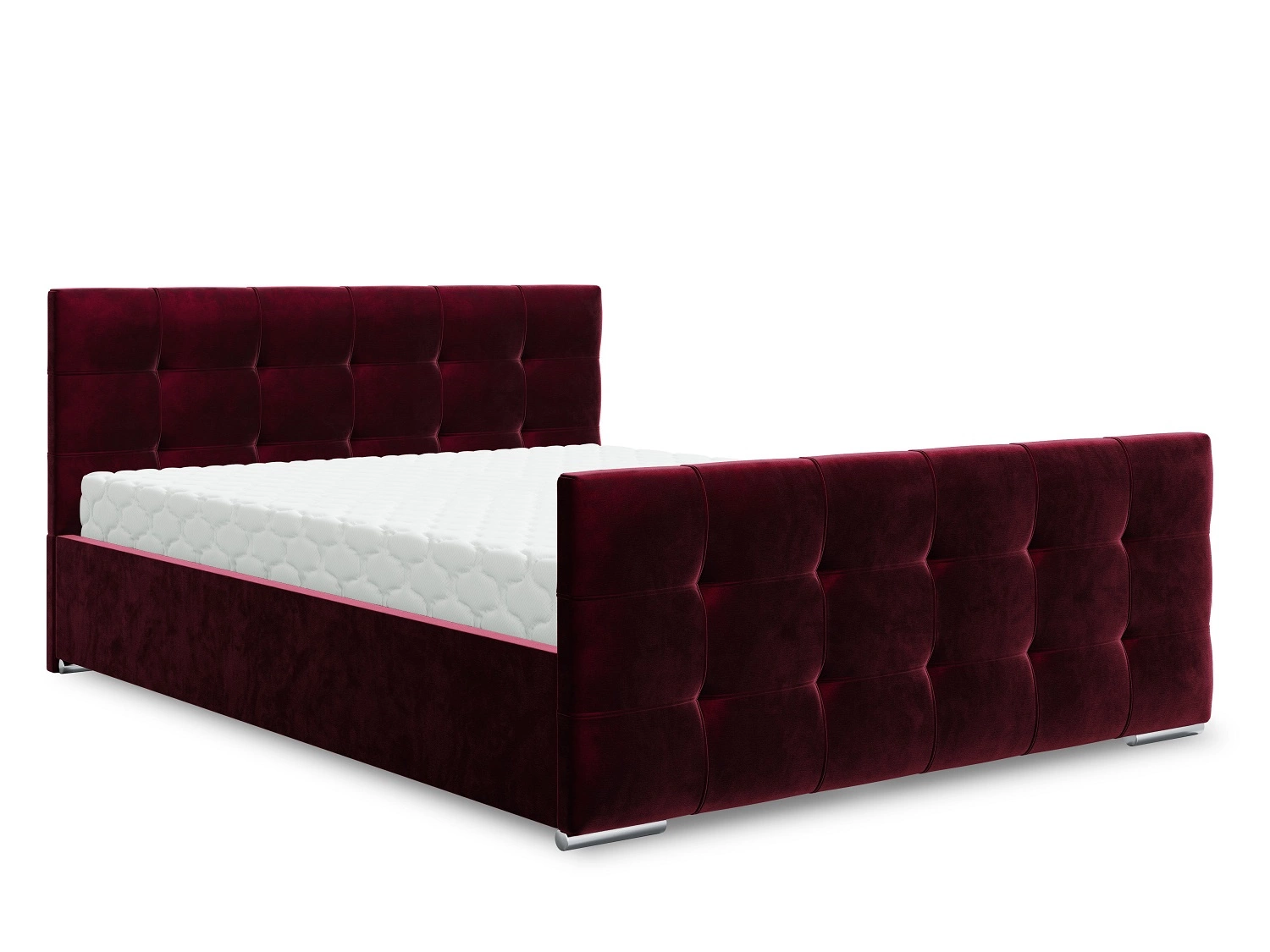 Łóżko tapicerowane Verlan 160x200 bordowe z pojemnikiem w nowoczesnym skandynawskim stylu z pikowanym zagłówkiem oraz zanóżkiem