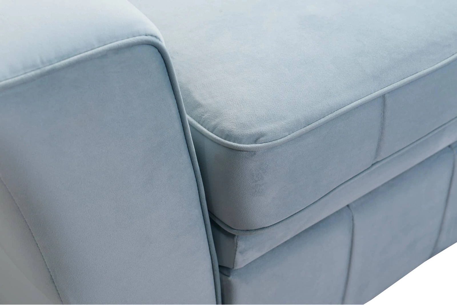 Narożnik wykonany z tkaniny typu velvet Amor Velvet 4308 gwarantuje najwyższy komfort i funkcjonalność podczas codziennego wypoczynku w salonie, sypialni, pokoju dziennym, pokoju gościnnym czy innym pomieszczeniu, w którym planujesz ustawić ten niezwykle modernistyczny i nowoczesny narożnik!