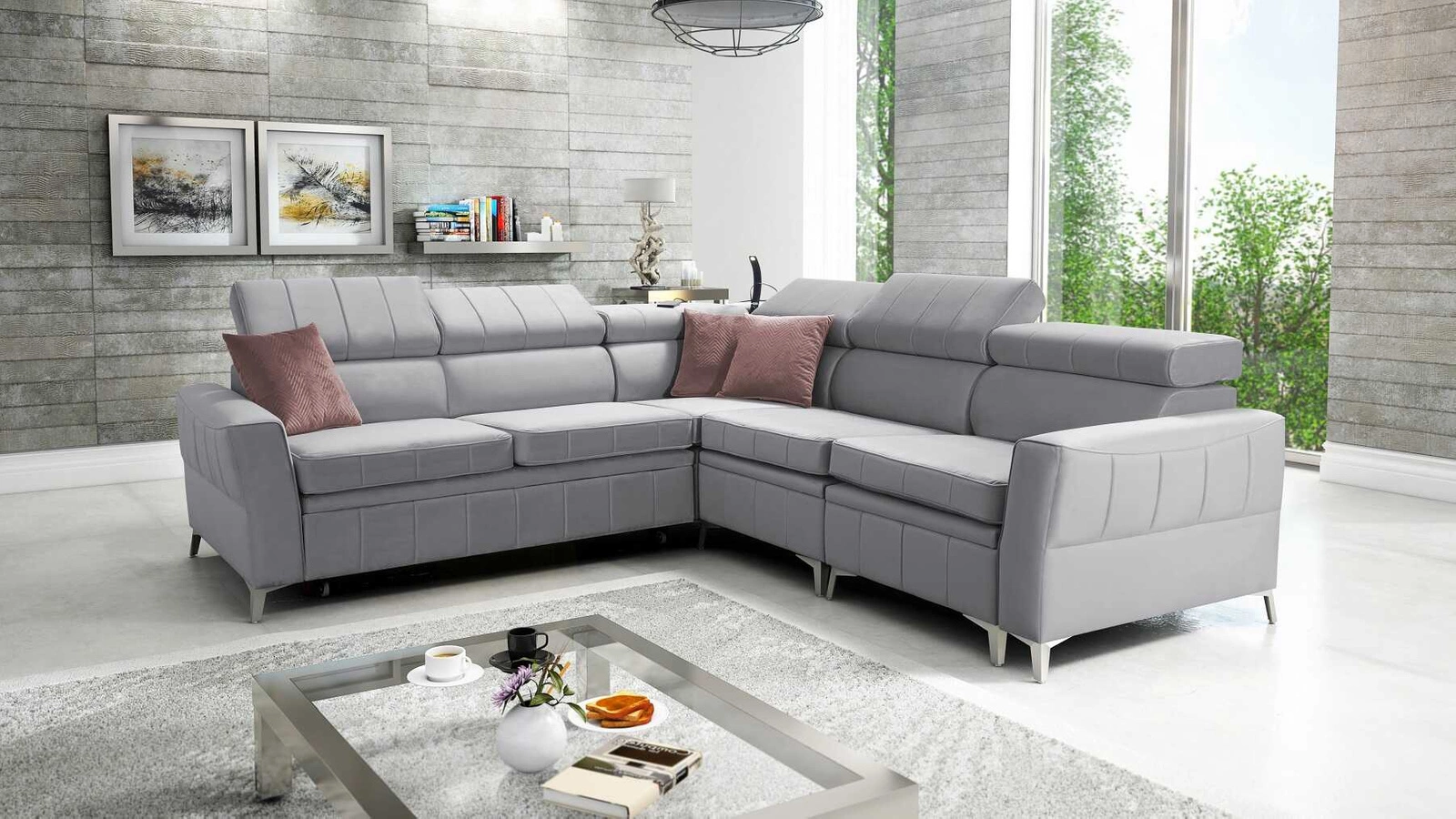 Narożnik Rava IV w kolorze szary popiel z regulowanymi zagłówkami to elegancki mebel, który dopasuje się do każdej aranżacji.