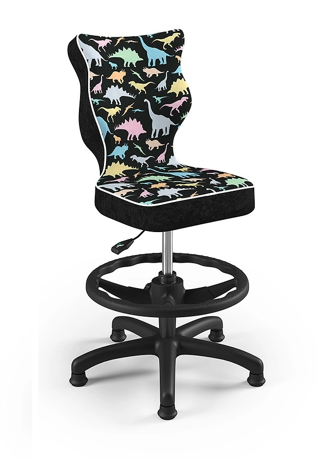 Krzesło do biurka Petit motyw dinozaury dopasowane do wzrostu 119-142 cm ergonomiczne krzesło obrotowe z podnóżkiem
