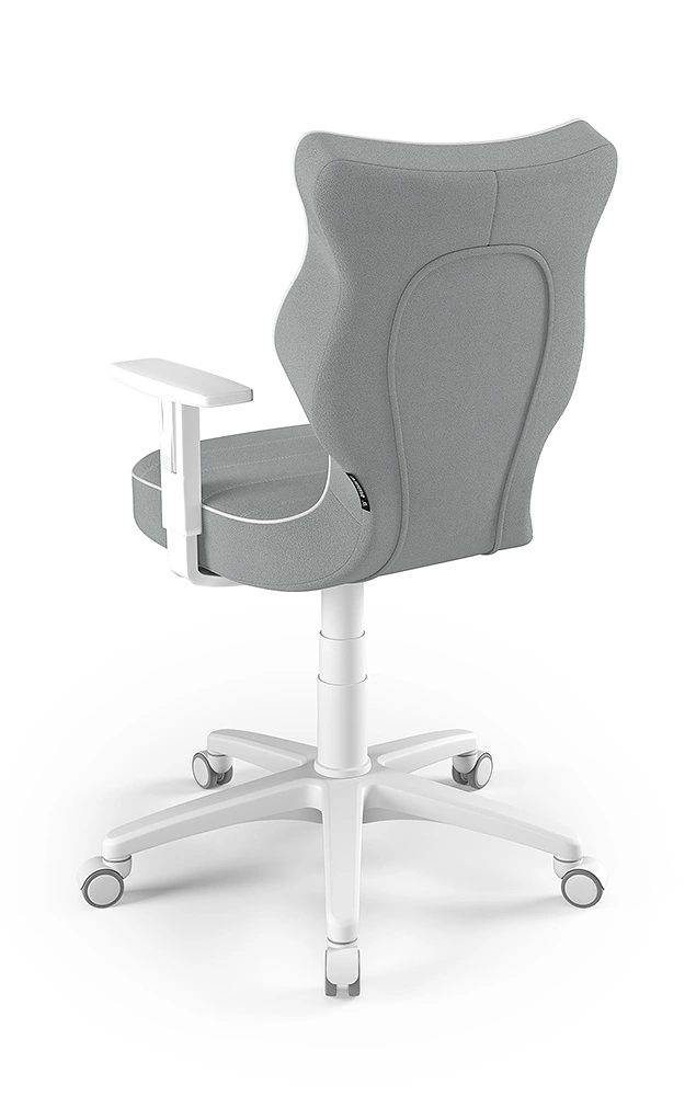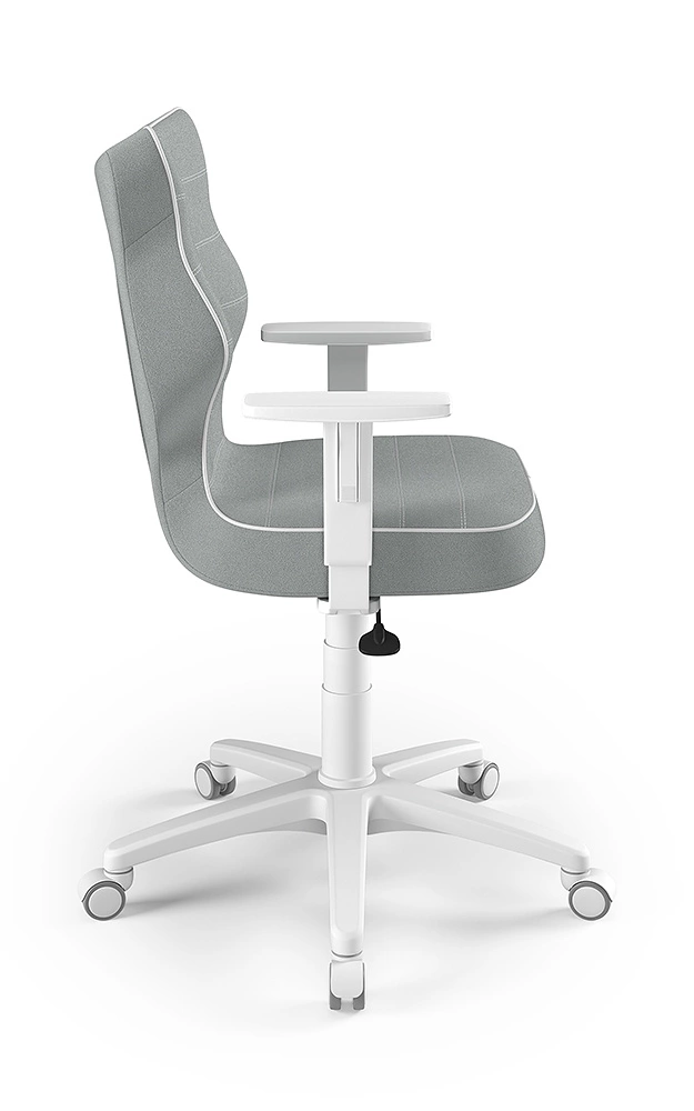 Krzesło obrotowe Duo to doskonały wybór dla dziecka, które zapewni niezwykłą wygodę i bezpieczeństwo. Krzesło idealnie wpasuje się w każdą aranżację pokoju dziecięcego lub pokoju młodzieżowego. Zestawienie szarej tkaniny z białą podstawą nadaje całości nowoczesności i uczynią krzesło stylowym dodatkiem wnętrza. Niezwykle ergonomiczne siedzisko zostało obszyte tkaniną typu welur Jasmine 03, która wykazuje dużą odporność na ścieranie, jest łatwa do utrzymania w czystości oraz jest trudnopalna. Dzięki właściwościom tkaniny krzesło obrotowe przez długi czas zachowa swój nieskazitelny wygląd. Krzesło do biurka Duo oferuje uniwersalną wszechstronność sprawdzając się nie tylko podczas nauki, ale także gry i pracy.