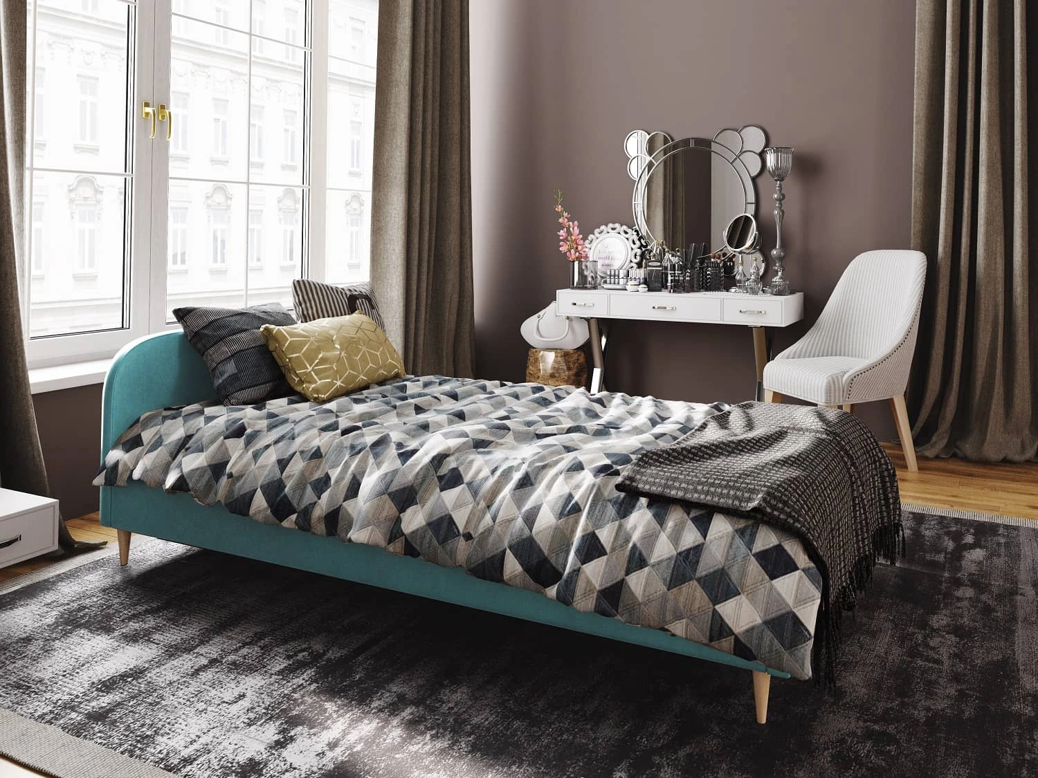 Łóżko tapicerowane Ivrea 90x200 w kolorze błękitnym to stylowy mebel, który idealnie wkomponuje się do pokoju nastolatka czy małej sypialni.