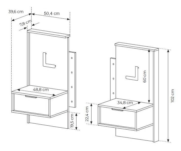 Szafka nocna wykonana została z wysokiej jakości płyty laminowanej o grubości 16mm, która charakteryzuje się odpornością na wpływ czynników zewnętrznych takich jak obicia, uderzenia i niefortunne zadrapania. Stylowym wykończeniem frontów szuflad są uchwyty krawędziowe w kolorze czarnym. Szafka wyposażona jest w subtelne oświetlenie LED, dzięki czemu bryła zyskuje na funkcjonalności, a poprzez ciekawą konstrukcję wizualną lekkość.