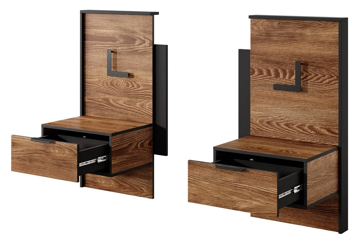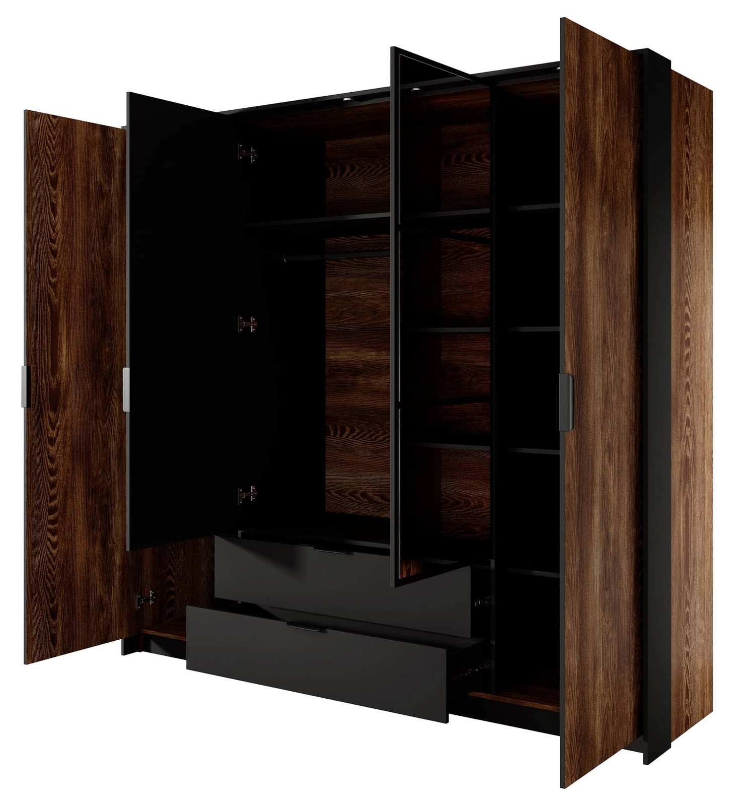 Zestaw mebli do sypialni Dover kasztan / antracyt oryginalny design komplet mebli do sypialni metalowe dodatki solidne wykonanie