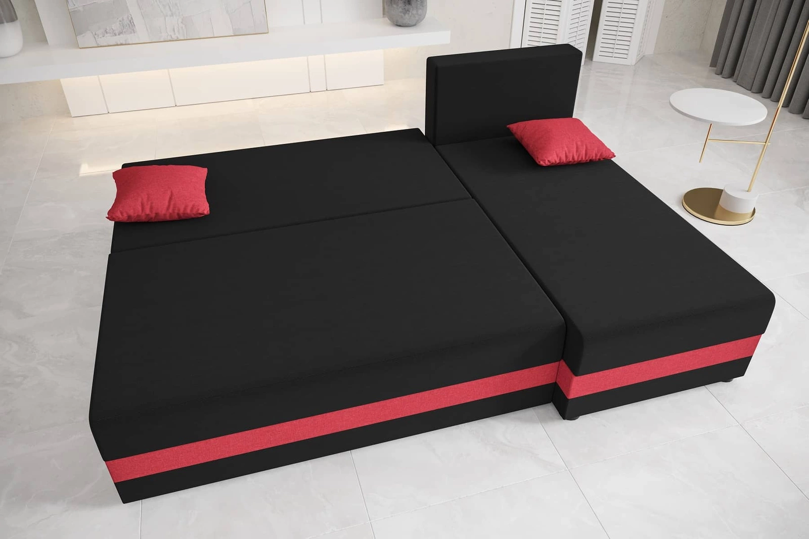 Narożnik z funkcją spania Bowers czarny / czerwony prawostronny narożnik z pojemnikiem na pościel gwarancja najwyższego komfortu