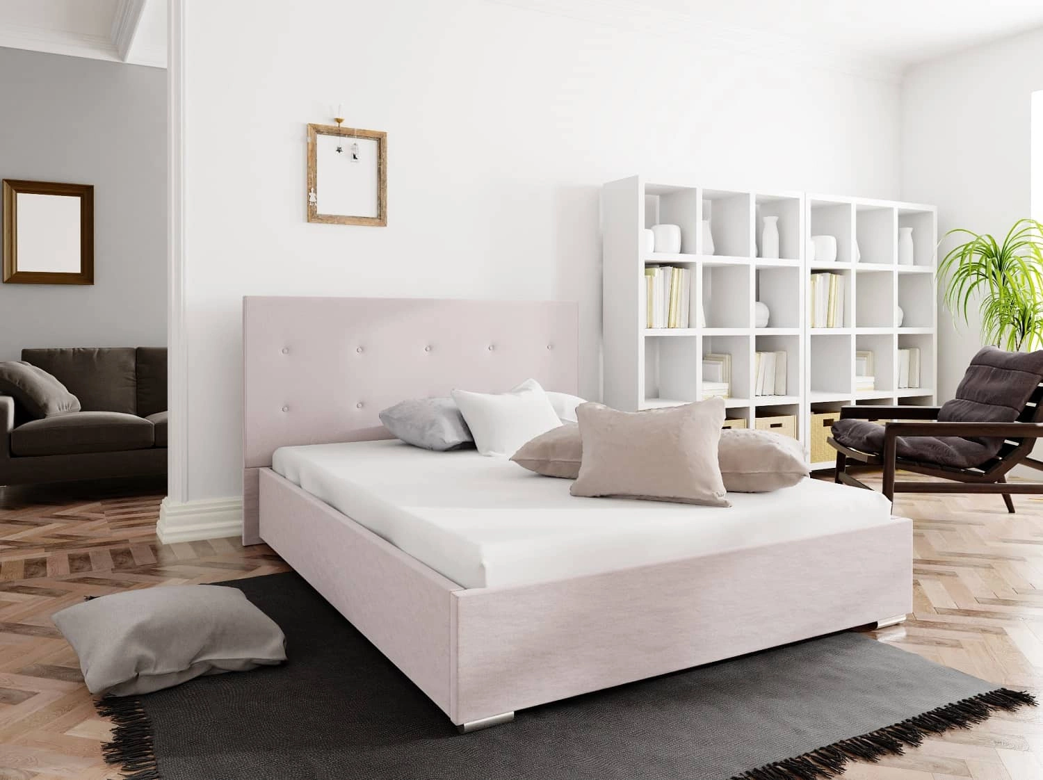 Łóżko tapicerowane Bejar 180x200 w kolorze pudrowy róż to idealne rozwiązanie do sypialni urządzonej w stylu nowoczesnym oraz klasycznym.