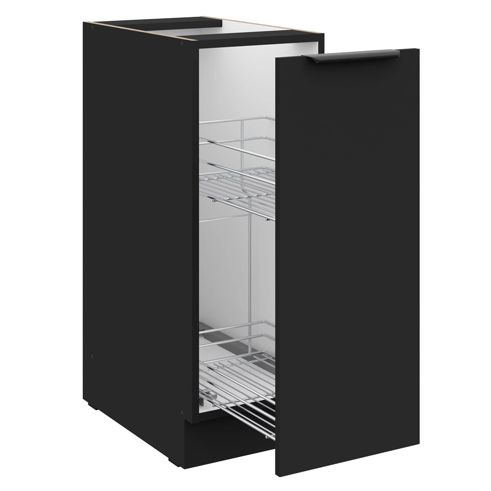 Zestaw mebli kuchennych Black jest utworzony z szafek kuchennych modułowych. Dzięki modułowej budowie, szafki kuchenne z zestawu można ustawić w dowolny sposób, dopasowując układ do własnych potrzeb. Meble kuchenne modułowe Black to nieograniczona ilość pomysłów na aranżację. W ofercie sklepu 24naszemeble.pl znajdziesz szafki kuchenne stojące oraz szafki kuchenne wiszące, dzięki czemu będziesz mógł umeblować kuchnię według własnego pomysłu.