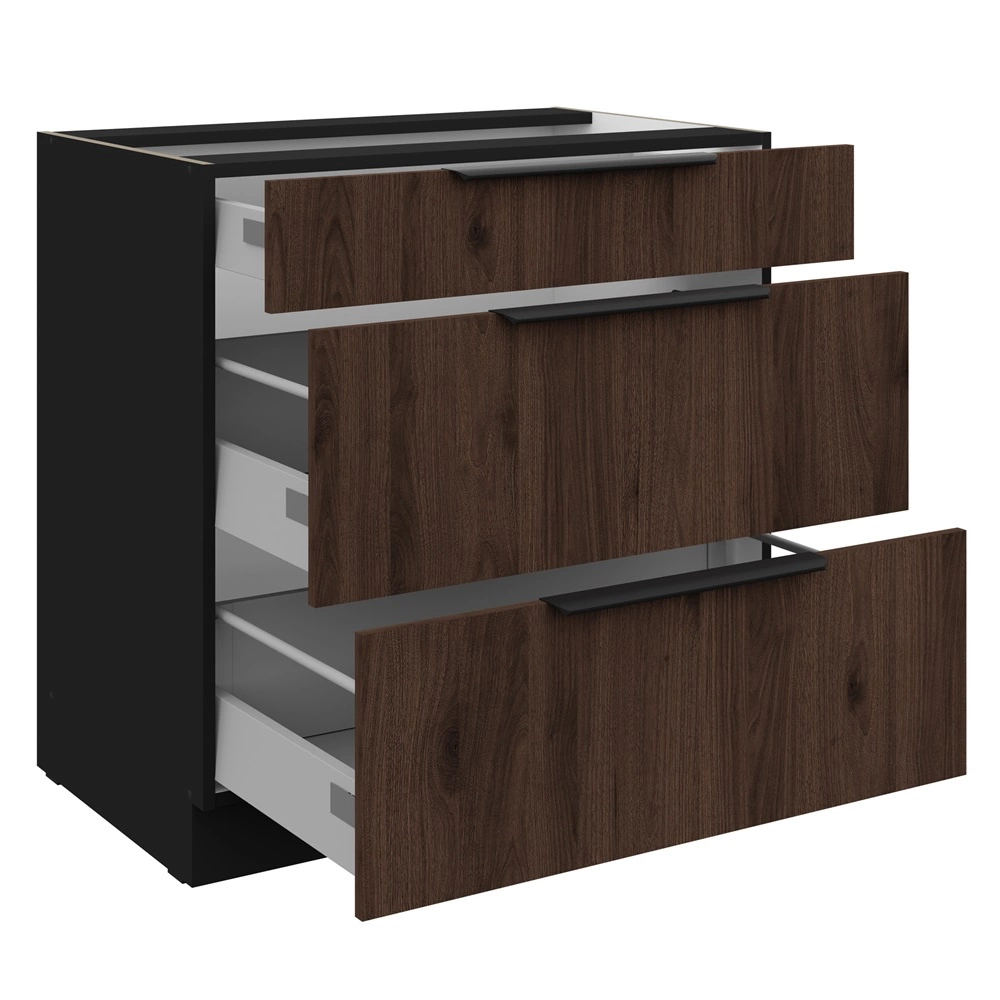 Szafka kuchenna z szufladami 80 cm Brianza w kolorze orzech okapi / czarny należy do kategorii mebli kuchennych modułowych, z których można utworzyć dowolne zestawy.