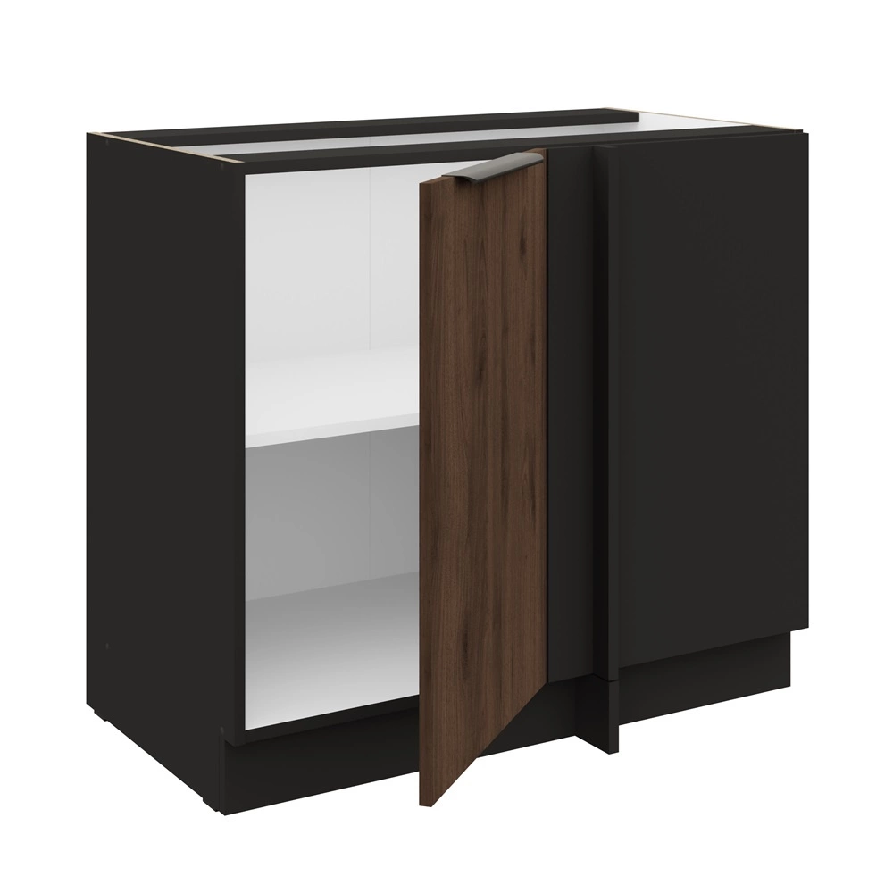 Szafka kuchenna narożna dostawiana Brianza w kolorze orzech okapi / czarny należy do kategorii mebli kuchennych modułowych, z których można utworzyć dowolne zestawy.