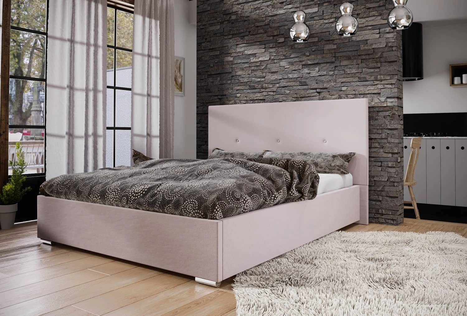 Łóżko tapicerowane Burgos 160x200 w kolorze pudrowy róż to idealne rozwiązanie do sypialni urządzonej w stylu nowoczesnym oraz klasycznym.