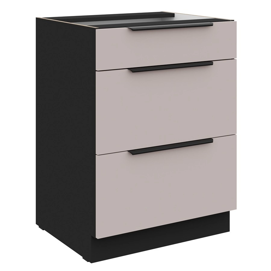 Szafka kuchenna z szufladami 60 cm Tarraco w kolorze beżowy / czarny należy do kategorii mebli kuchennych modułowych, z których można utworzyć dowolne zestawy.