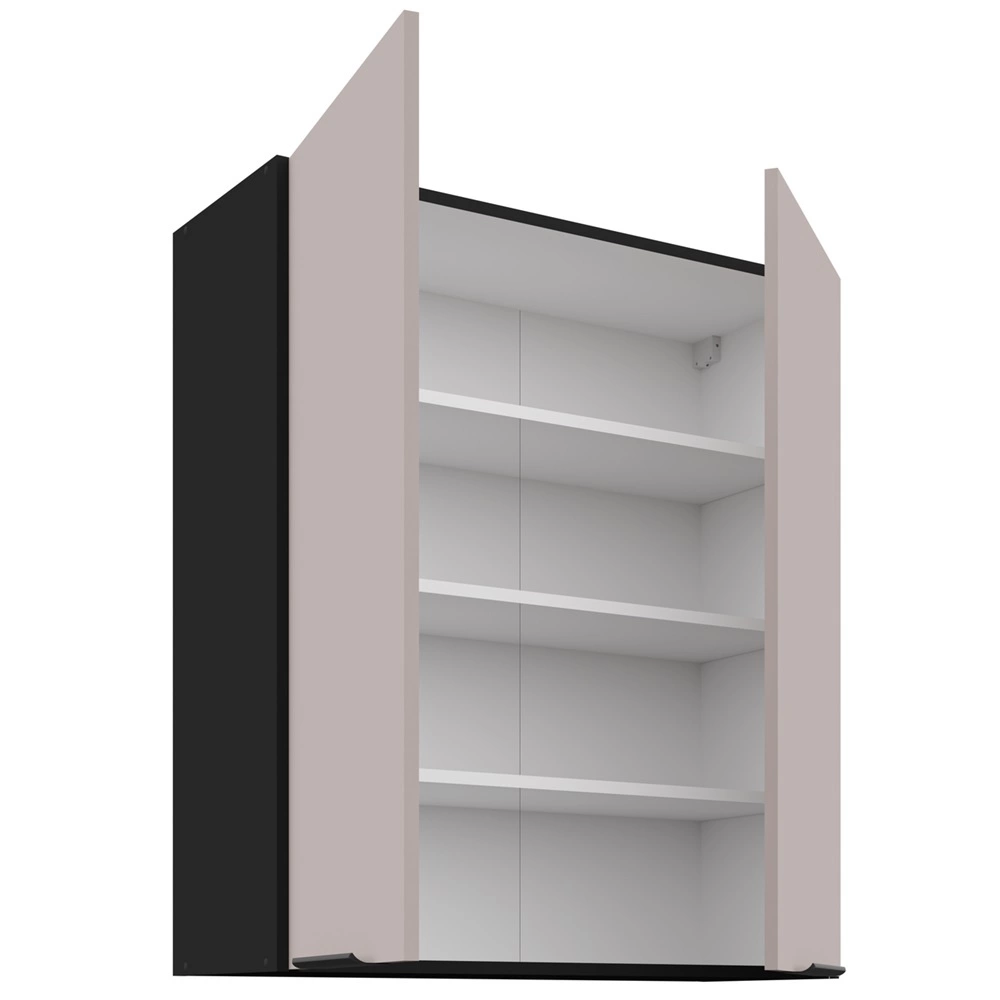 Dwie półki szafki kuchennej można wyciągnąć i uzyskać miejsce na wysokie przedmioty. Standardowym wyposażeniem szafki kuchennej są zawiasy z systemem cichego domykania. Spowalniacze zwiększają komfort i bezpieczeństwo użytkowania mebli.