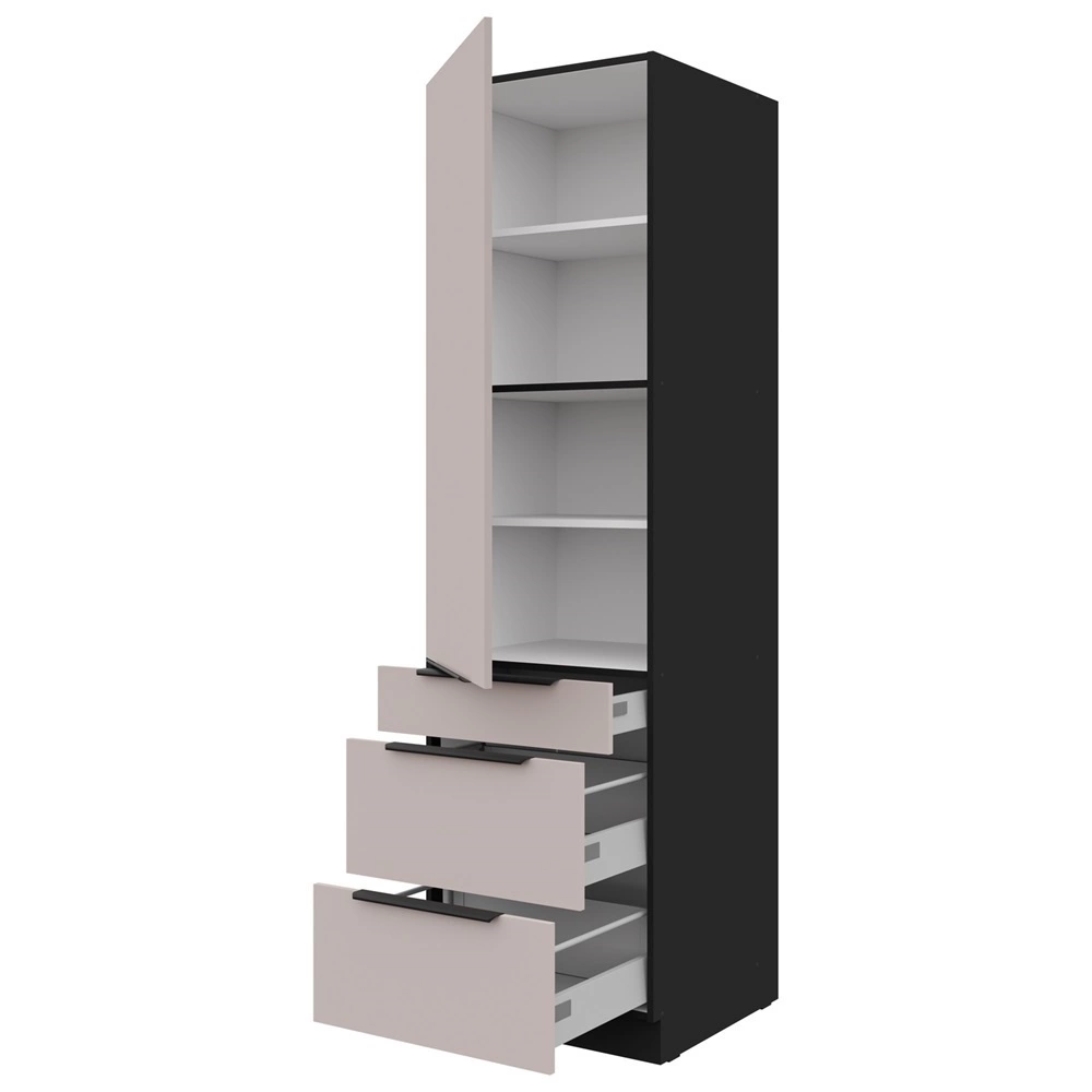 Słupek kuchenny z szufladami 60 cm Tarraco w kolorze beżowy / czarny należy do kategorii mebli kuchennych modułowych, z których można utworzyć dowolne zestawy.