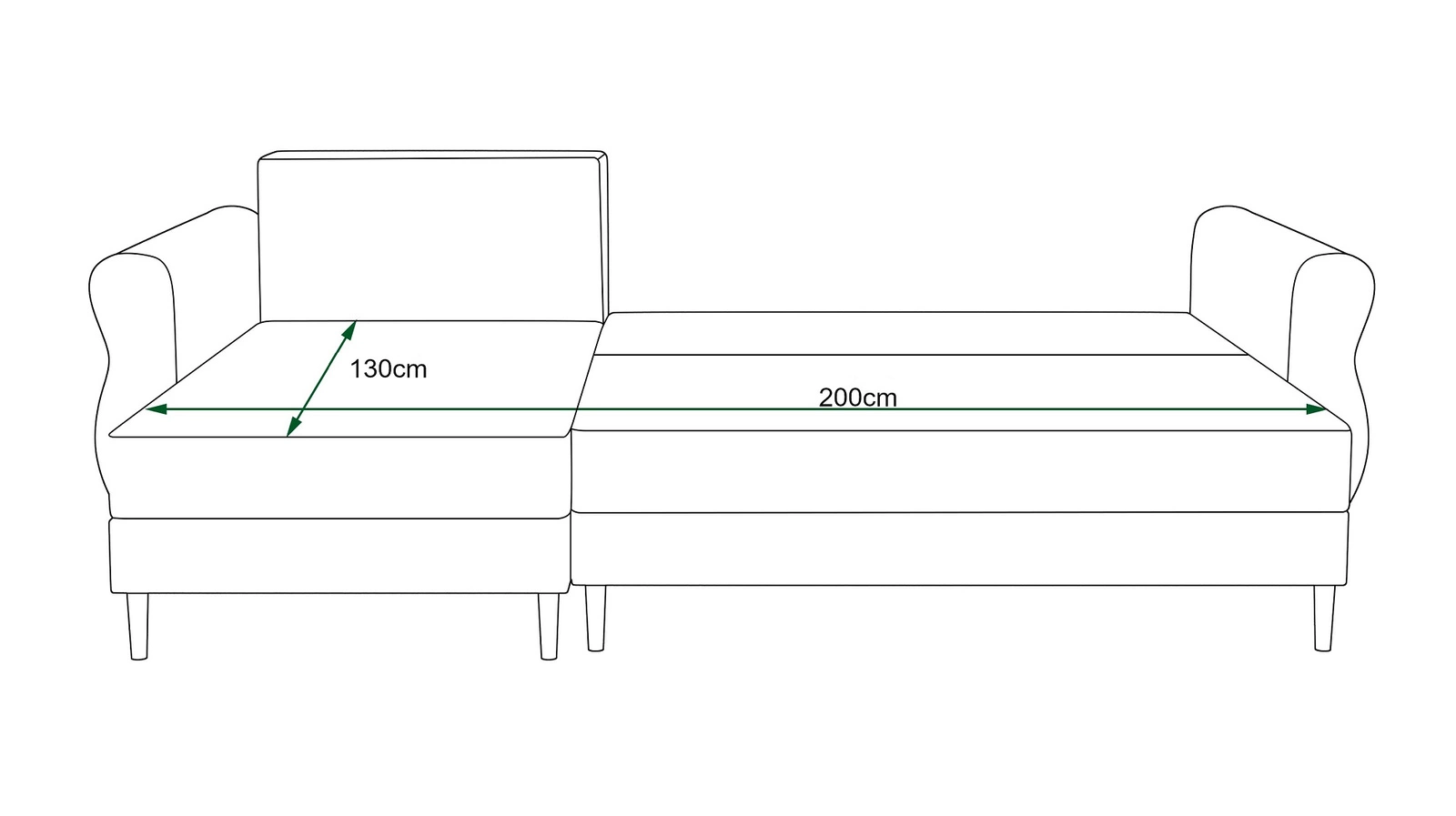Wymiary narożnika z funkcją spania Wilkins