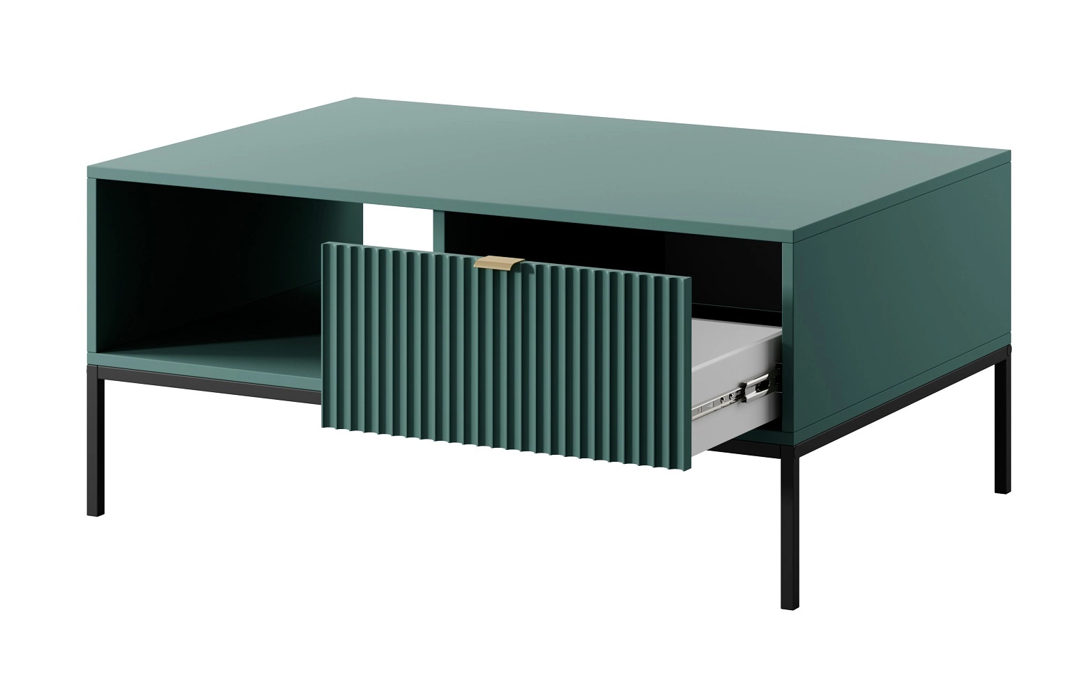 Stolik kawowy Lovro pastelowy zielony z szufladami nowoczesny design blat odporny na rozlane ciecze
