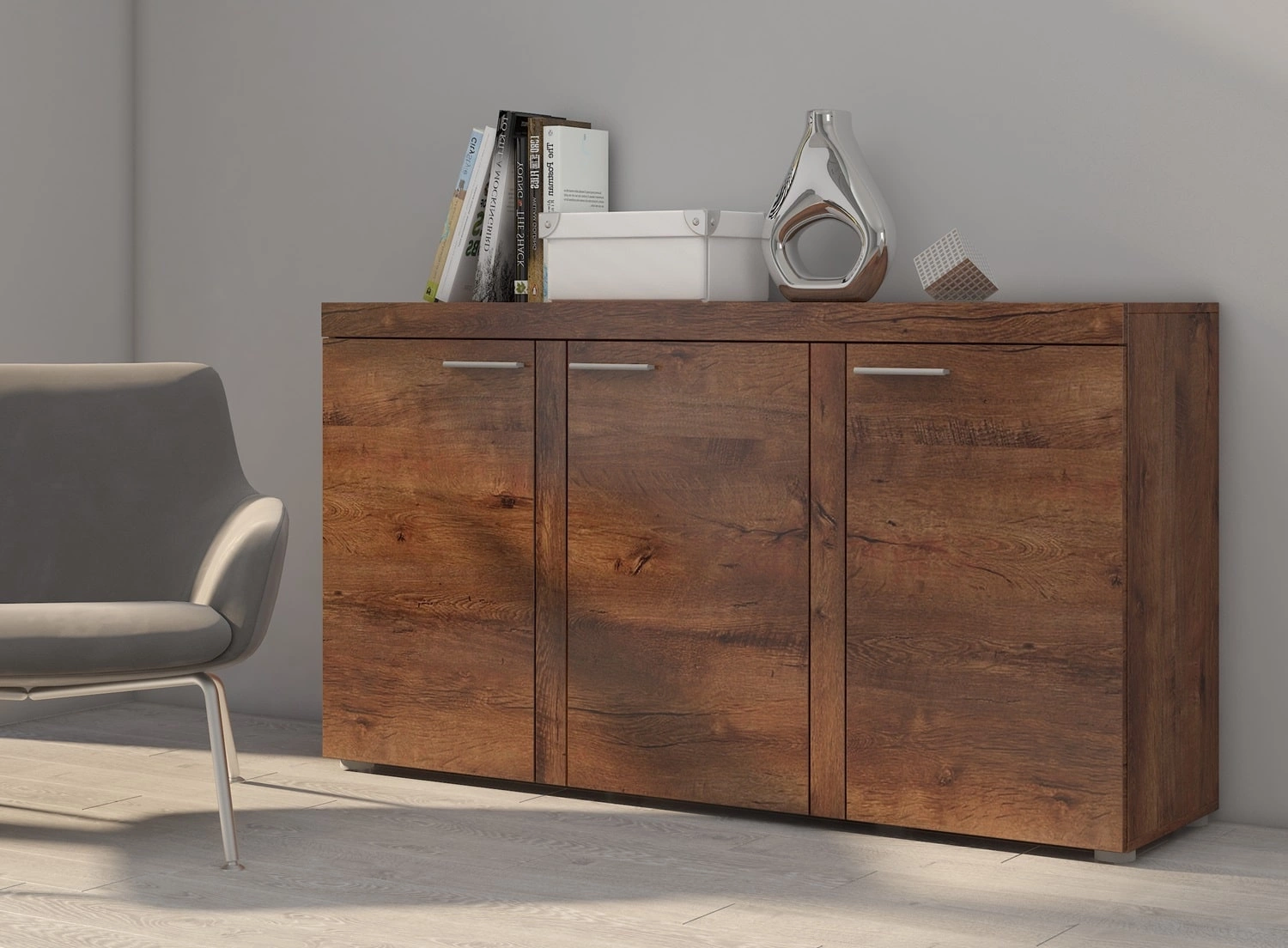 Komoda Rene 149 cm w kolorze dąb lefkas to stylowe i funkcjonalne rozwiązanie do salonu lub pokoju młodzieżowego.
