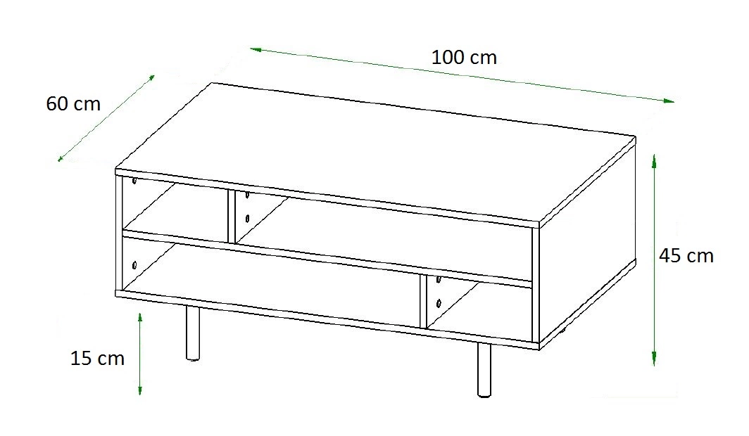 Stolik kawowy wykonany został z wysokiej jakości płyty laminowanej o grubości 16mm, która charakteryzuje się odpornością na wpływ czynników zewnętrznych takich jak obicia, uderzenia i niefortunne zadrapania. Całość bryły została wsparta na metalowej podstawie.