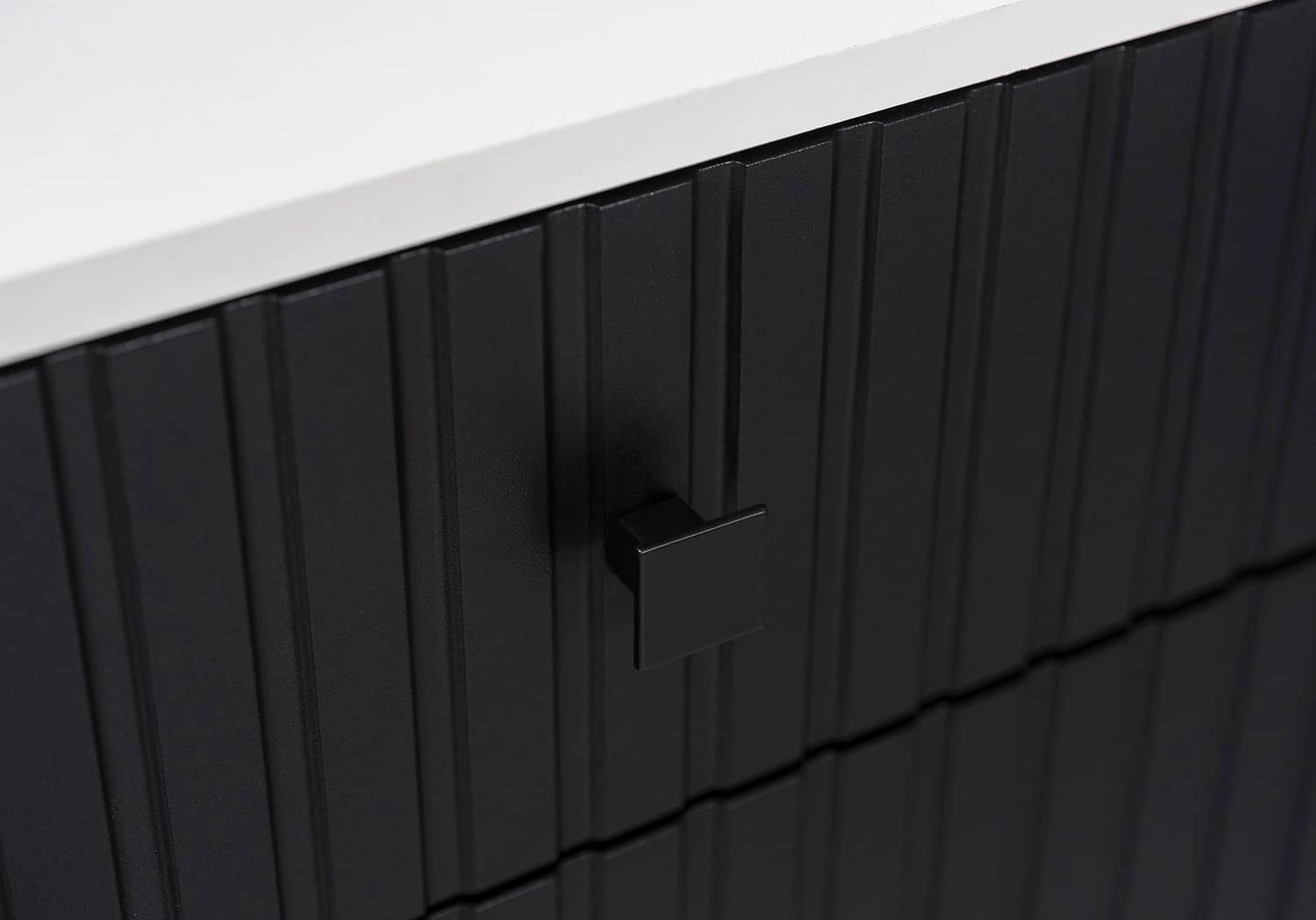 Komoda z szufladą Senja 140 cm biała / czarna elegancki design ozdobny ryflowany front z metalowym uchwytem