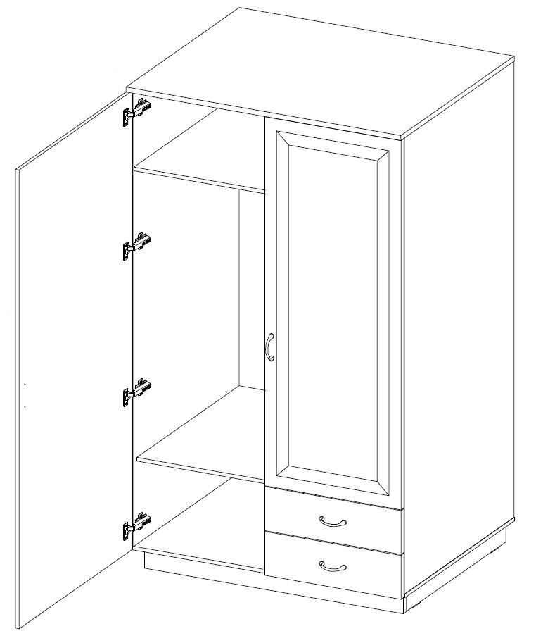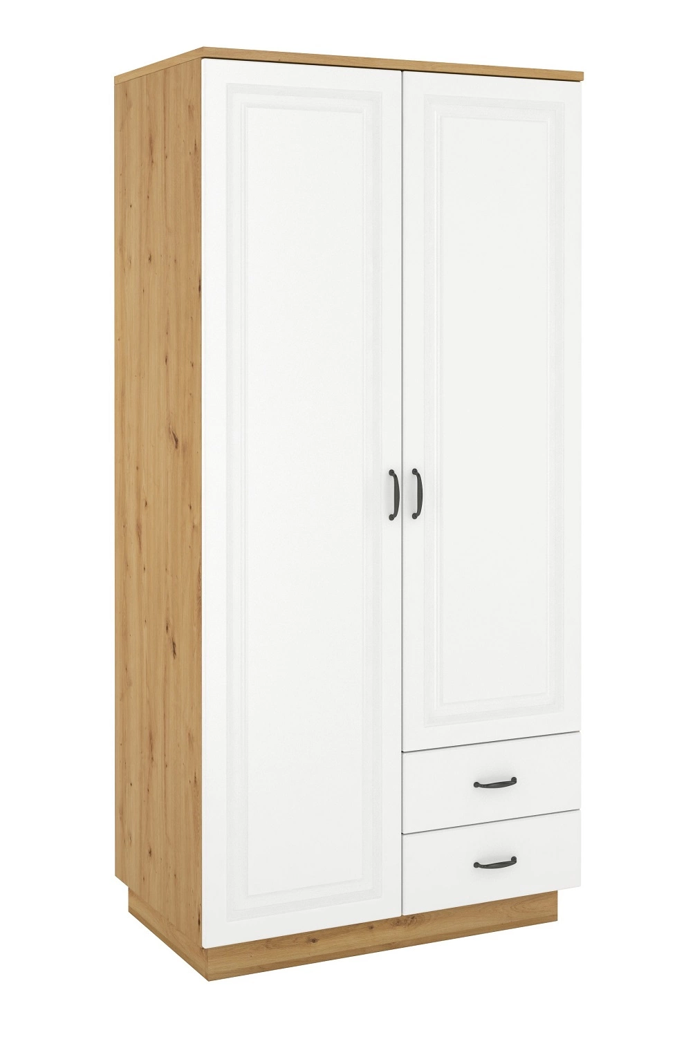 Frezowane fronty zostały wykonane z płyty MDF. Korpus wykonany z wysokiej jakości płyty laminowanej o grubości 16mm, która charakteryzuje się odpornością na wpływ czynników zewnętrznych takich jak obicia, uderzenia i niefortunne zadrapania. Szafa skonstruowana jest z 2 drzwi uchylnych i 2 szuflad. Dzięki swojej uniwersalności i funkcjonalności szafa na ubrania z powodzeniem sprawdzi się jako szafa do sypialni, szafa do przedpokoju lub jako szafa do pokoju dziecięcego. Szafa Scandi będzie również świetnym wyborem do pokoju niemowlęcego. Doskonale sprawdzi się także w roli garderoby do przedpokoju.