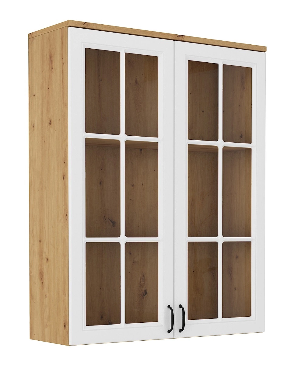 Kredens Scandi to przepis na ergonomiczne oraz funkcjonalne wnętrze. Obecność kredensu stanie się stylowym wykończeniem pomieszczenia oraz nada mu charakteru i niepowtarzalnego klimatu. Wyraziste połączenie dębowego korpusu z białymi frontami wykończonymi stylowym frezem sprawia, że całość prezentuje się bardzo elegancko. Dopełnieniem frontów kredensu są metalowe uchwyty w kolorze czarnym, które poza swoją podstawową funkcją, nadają meblom niepowtarzalnego stylu. Przeszklone fronty to elementy, które przyciągają wzrok oraz pozwolą na wyeksponowanie dodatków stanowiących dekoracje salonuPojemne szuflady komody pomieszczą wszystkie rzeczy oraz niezbędne akcesoria. Nadstawka pełni rolę praktycznego i funkcjonalnego mebla, tworząc przy tym dodatkowe miejsce do przechowywania. Kredens do jadalni Scandi z powodzeniem odnajdzie się we wnętrzach w stylu klasycznym, skandynawskim oraz nowoczesnym.