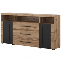 Komoda z szufladami Roger 182 cm dąb wotan / czarny elegancka stylistyka komody wzbogacona o stylowe czarne dodatki idealna do salonu sypialni