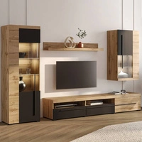 Meblościanka Roger dąb wotan / czarny elegancka stylistyka mebli wzbogacona o stylowe czarne dodatki idealna meblościanka do salonu