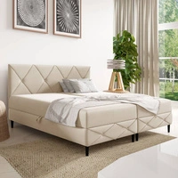 Łóżko kontynentalne Noren 160x200 beżowe nowoczesna forma łóżka do sypialni pojemniki na pościel klasyczne pikowanie na wezgłowiu