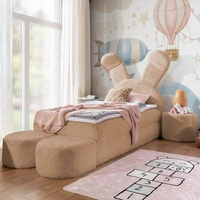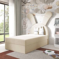 Łóżko kontynentalne Beti Plus 100x200 beżowe uroczy design unikatowy zagłówek w kształcie króliczka łózko z szafkami nocnymi i pufami