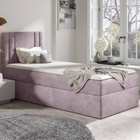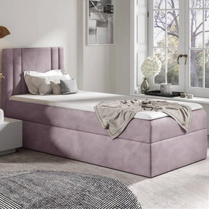 Łóżko kontynentalne Alia 90x200 wrzosowe nowoczesny styl idealne łóżko do pokoju dziecięcego subtelne pionowe przeczycia na wezgłowiu