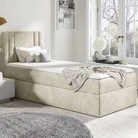 Łóżko kontynentalne Alia 90x200 beżowe nowoczesny styl idealne łóżko do pokoju dziecięcego subtelne pionowe przeczycia na wezgłowiu