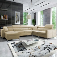 Narożnik z funkcją spania Nausa III beżowy lewostronny velvet stylowy komfortowy narożnik regulowane zagłówki pojemnik na pościel