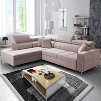 Narożnik z funkcją spania Nausa III pudrowy róż lewostronny velvet stylowy komfortowy narożnik regulowane zagłówki pojemnik na pościel
