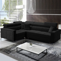 Narożnik z funkcją spania Nausa czarny lewostronny velvet stylowy komfortowy narożnik regulowane zagłówki pojemnik na pościel