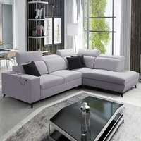 Narożnik z funkcją spania Kelly Sleek VI szary prawostronny nowoczesny design narożnik do salonu z regulowanymi zagłówkami