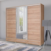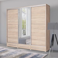 Szafa przesuwna Hajfa 255 cm dąb riviera nowoczesny design szafy z lustrem korpus wykonany z płyty o grubości 22mm