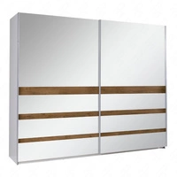 Szafa przesuwna Lux 244 cm biała / dąb riviera z lustrem nowoczesny design oraz wykończenie ABS idealna szafa do sypialni lub garderoby