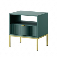 Szafka nocna z szufladą Lovro pastelowy zielony gustowny ryflowany dekor idealna szafka do sypialni złote metalowe dodatki