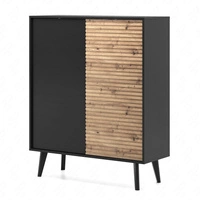 Komoda wysoka Saipan 104 cm czarny / dąb artisan designerski i komfortowy mebel nowoczesny design elegancka forma w nowoczesnym stylu dekoracyjny ryflowany dekor