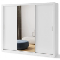 Szafa przesuwna z lustrem Idea 250 cm biała estetycznie wykonana szafa do sypialni lub pokoju młodzieżowego srebrne uchwyty