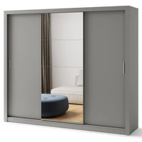 Szafa przesuwna z lustrem Idea 250 cm szara estetycznie wykonana szafa do sypialni lub pokoju młodzieżowego srebrne uchwyty