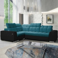 Narożnik z funkcją spania Luigi II turkusowy / czarny lewostronny komfort podczas codziennego wypoczynku narożnik z pojemnikiem na pościel