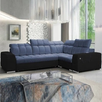 Narożnik z funkcją spania Luigi II niebieski / czarny prawostronny komfort podczas codziennego wypoczynku narożnik z pojemnikiem na pościel